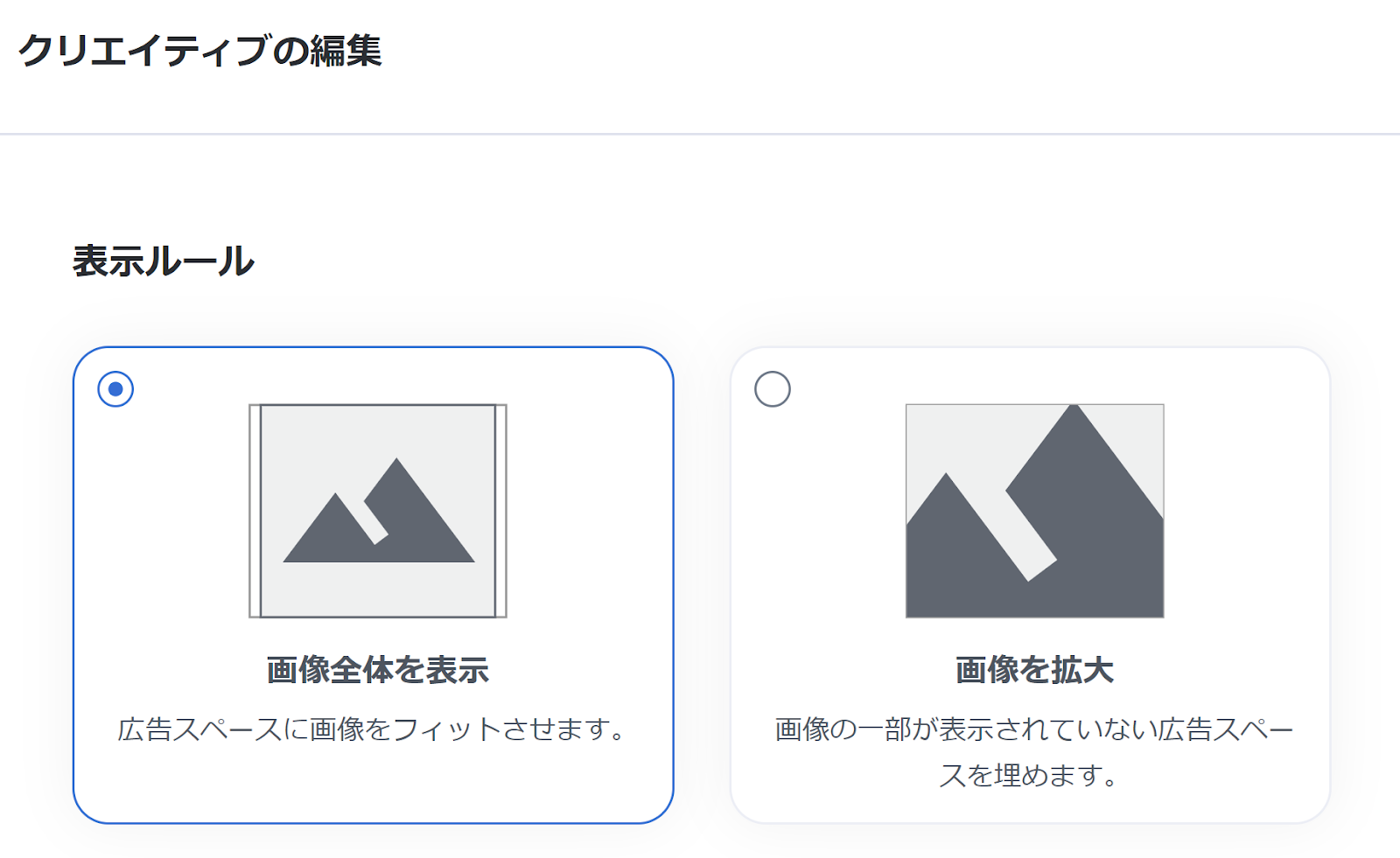 画像の表示ルールでは、「画像全体を表示」もしくは「画像を拡大」のどちらかを選択します。