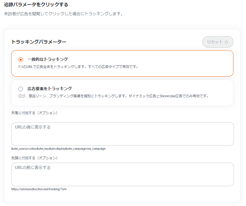 トラッキング設定では、「一般的なトラッキング」と「広告用をのトラッキング」の2つから選択します。