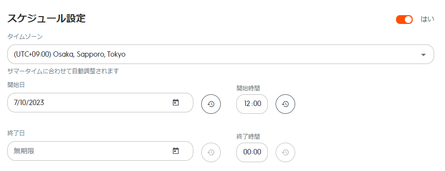 開始日を設定しても広告セットのステータスがOFFになっていると、配信が開始されないのでご注意ください。
