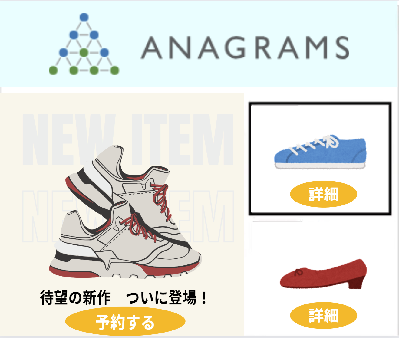 バナーエリアで目的を提示することで、ユーザーのニーズに沿ってサイト来訪を促すことができます。また、カタログアイテム枠では実際のアイテムイメージを伝えられるため、サイト来訪時のギャップ低減に繋げることも可能です。