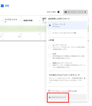 2.[列をカスタマイズ]を選択します。