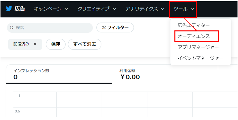 管理画面上段の「ツール」から「オーディエンス」を選択します。