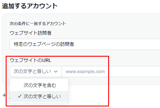 また、特定のウェブページの訪問者の場合は、ウェブサイトのURL条件を指定します。