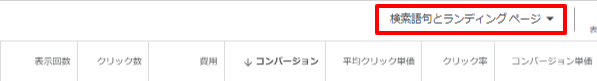 | 検索語句とランディングページ | 検索語句・広告見出し・ランディングページごとのデータ |