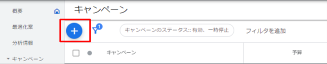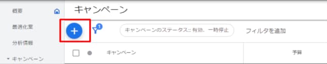 1.キャンペーンを選択して「+」をクリックして「新しいキャンペーンを作成」を選択します。