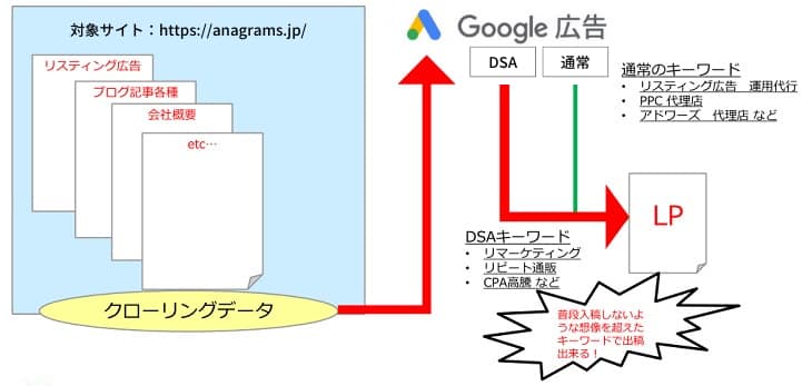 その問題を解決するための手段のひとつに、Google 広告の「動的検索広告(Dynamic Search Ads、略称DSA)」があります。