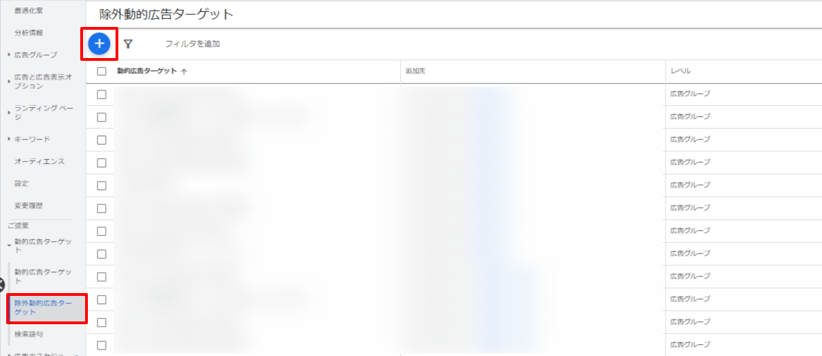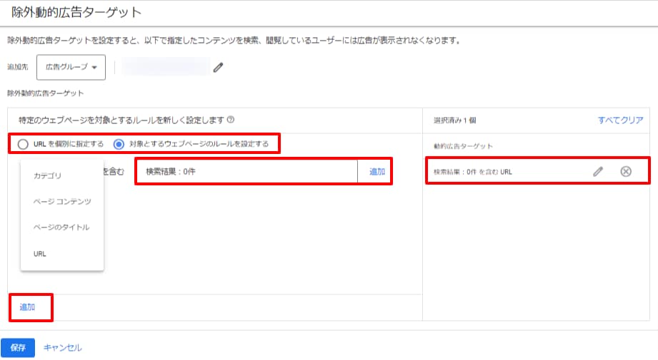 動的広告ターゲットで設定したページ群に除外したいコンテンツが含まれている場合は、除外設定することをおすすめします。