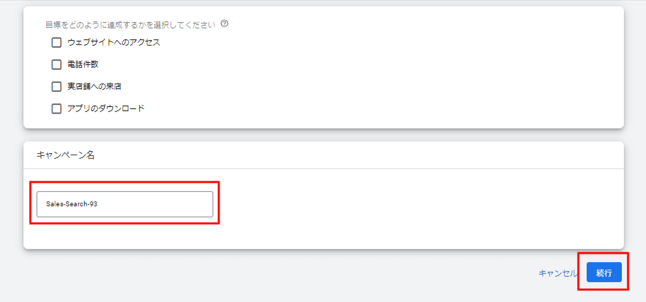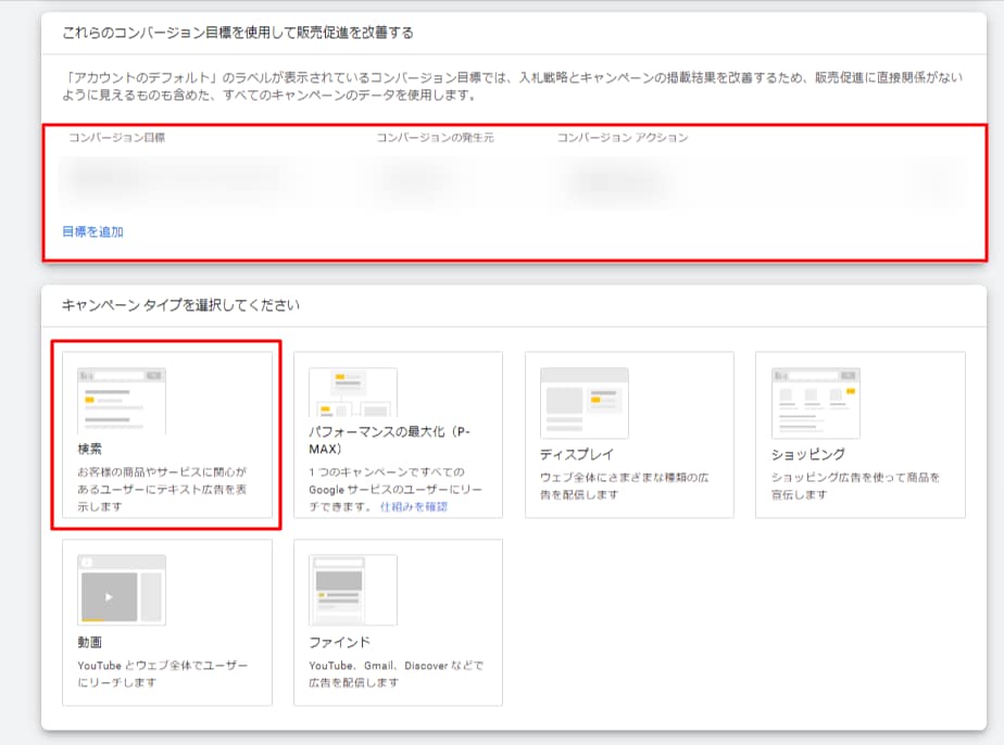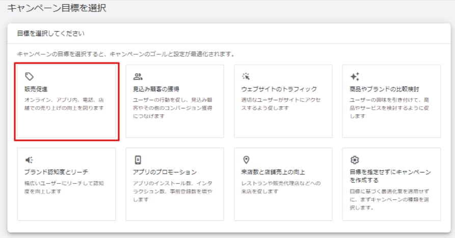 2.キャンペーンの目標を選択します。今回は例として「販売促進」を選択します。