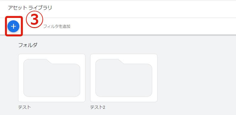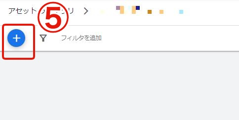 ⑤[+アイコン]をクリックして、該当のフォルダに入れたい画像をアップロードします。