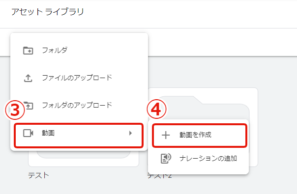 ④[動画を作成]をクリック