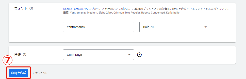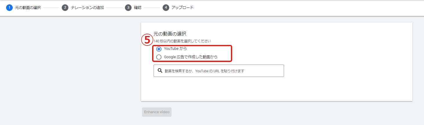 ⑤YouTubeまたはGoogle広告で作成されたものからソースビデオを選択。