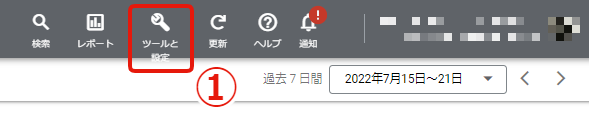 ①ナビゲーションメニューの[ツールと設定]をクリック