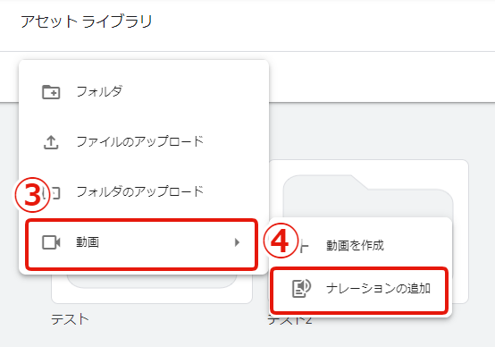 ④[ナレーションの追加]をクリック