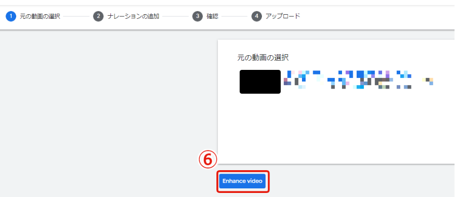 ⑥[ビデオの拡張]をクリック