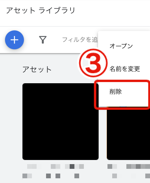 アセットライブラリにアップロードした画像を削除する方法です。