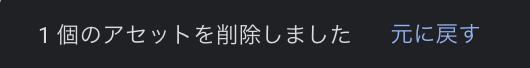 - 画像削除した直後、下記のポップアップが表示されている数秒の間は「元に戻す」をクリックすれば、復元できます。それ以降は復元できないため、必要に応じて再アップロードする必要があります。