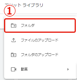 ①アセットライブラリ左上の[+アイコン]をクリックし、[フォルダ]を選択