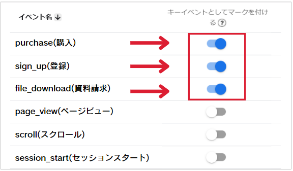 参考:[GA4] イベントにキーイベントとしてマークを付ける