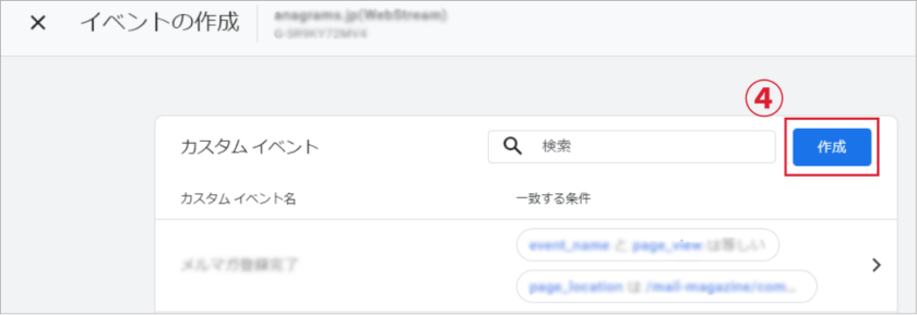 ③赤枠の「イベントを作成」ストリームをクリック。