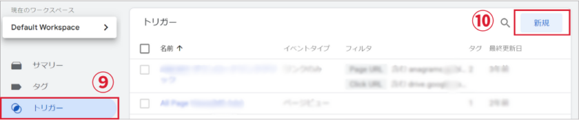 ⑨「トリガー」をクリック。