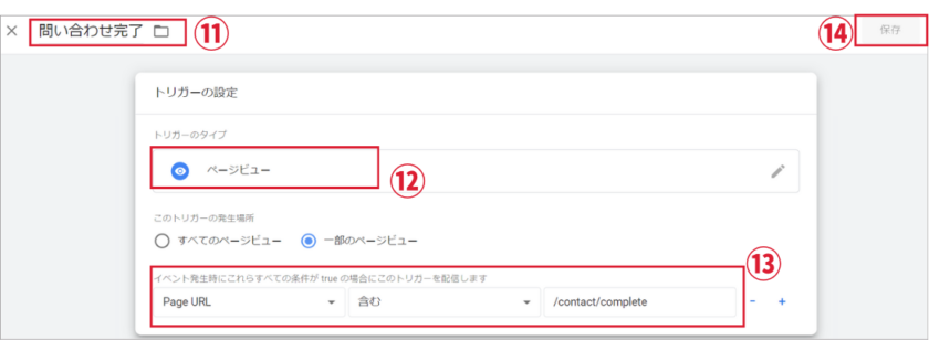 ⑫トリガーのタイプは「ページビュー」を選択。