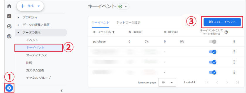 GA4では、ウェブサイトやアプリの目的に繋がる重要なイベントを「キーイベント」として設定できます。
