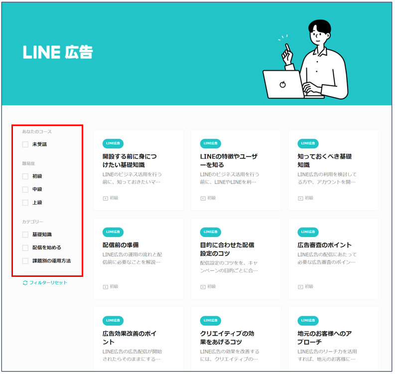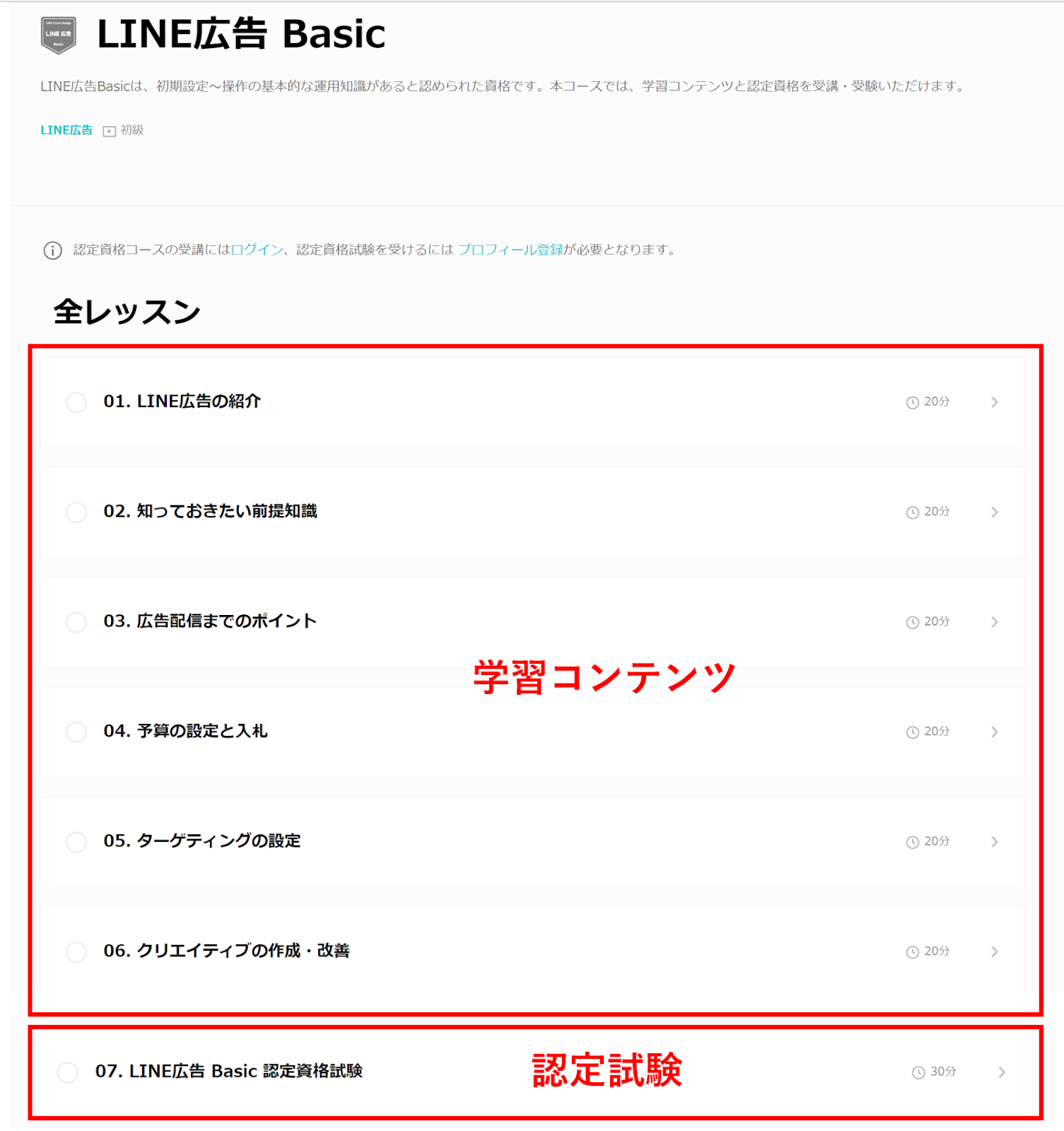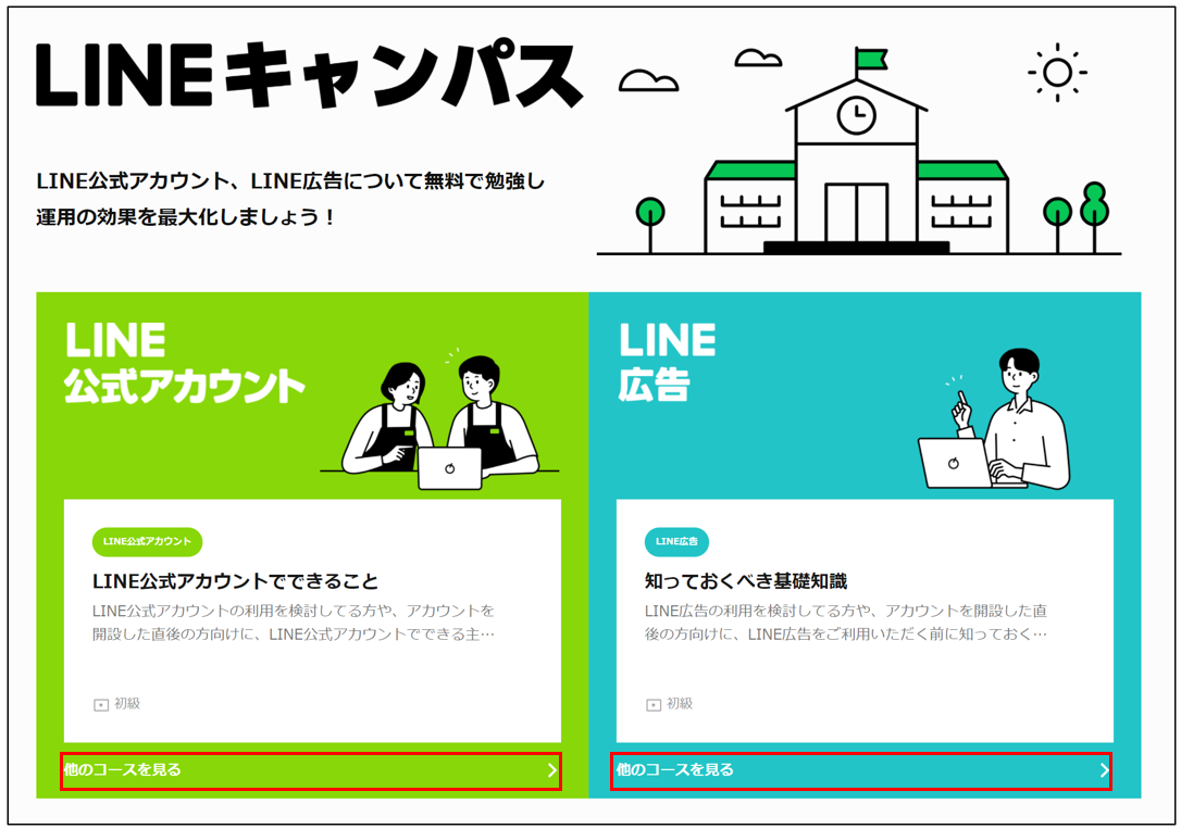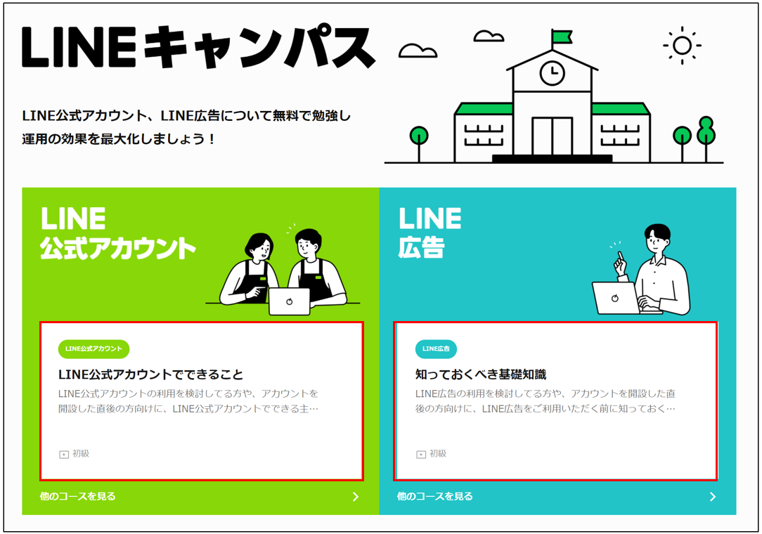 ここでは、LINE公式アカウントとLINE広告の学習コースの内容を開設します。