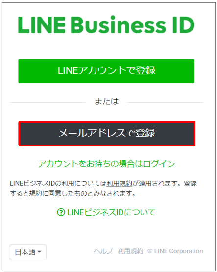 LINEの法人向けサービスの販売代理店以外の法人または個人の場合は次の手順になります。