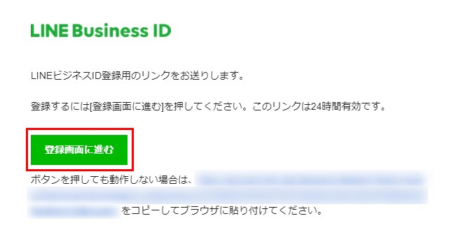 入力したメールアドレス宛に届いたメール内にある「登録画面に進む」をクリックします。