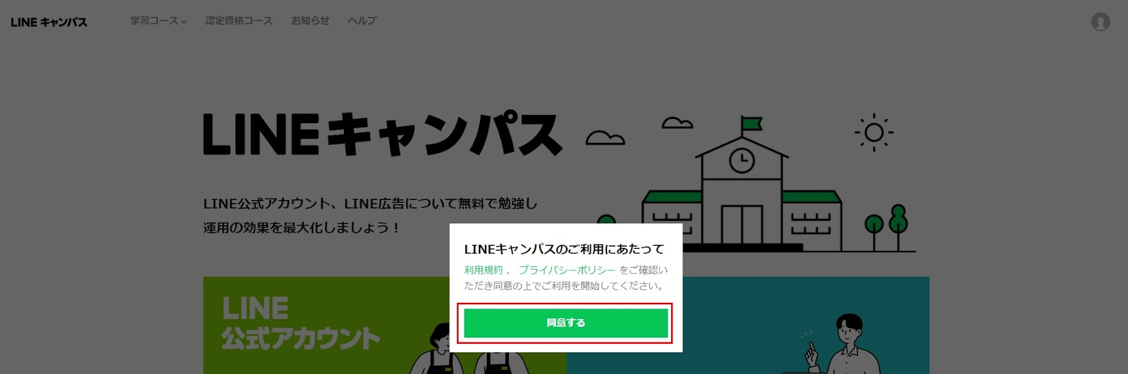 ここからは、LINEキャンパスで「LINE公式アカウント」と「LINE広告」を受講する方法を説明します。