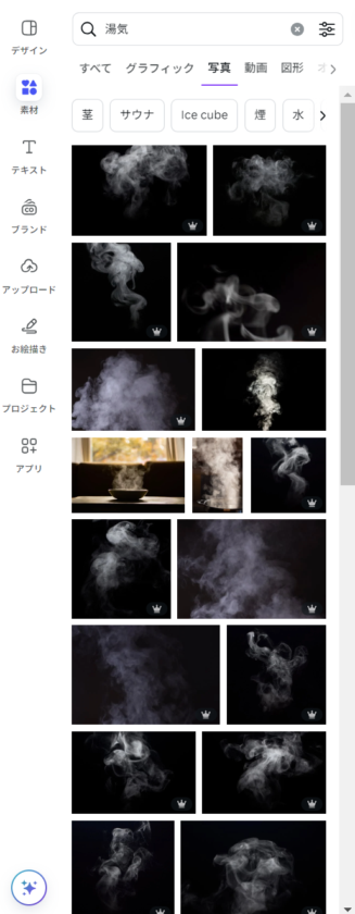 <Canvaで使える湯気の素材一覧>