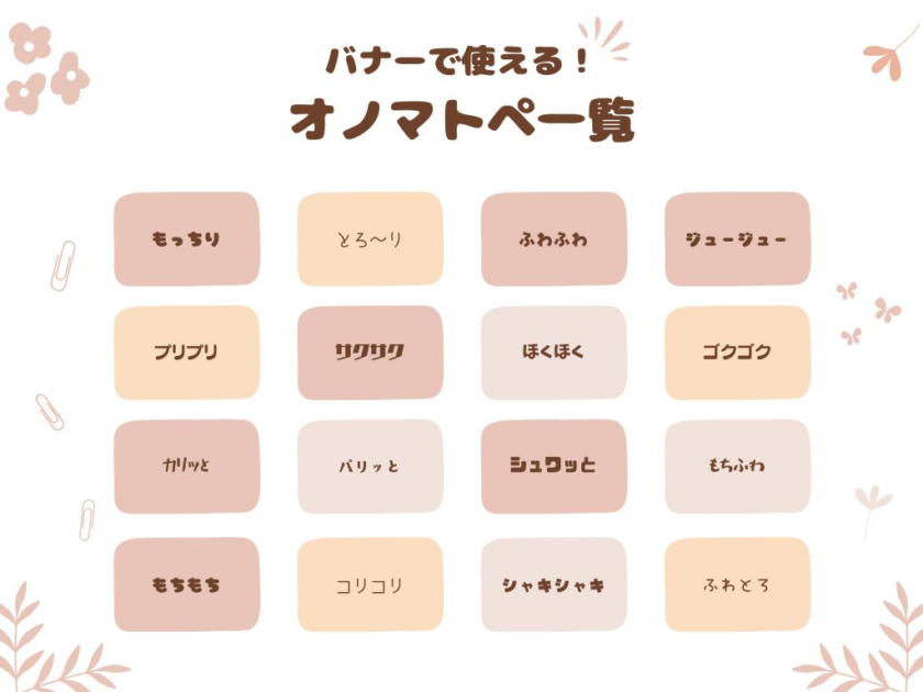 オノマトペとは、音や動作を文字で表した言葉のことです。例えば、「サクサク」「もちもち」「パリパリ」などが挙げられます。オノマトペを活用すると文字で味覚を刺激することができます。