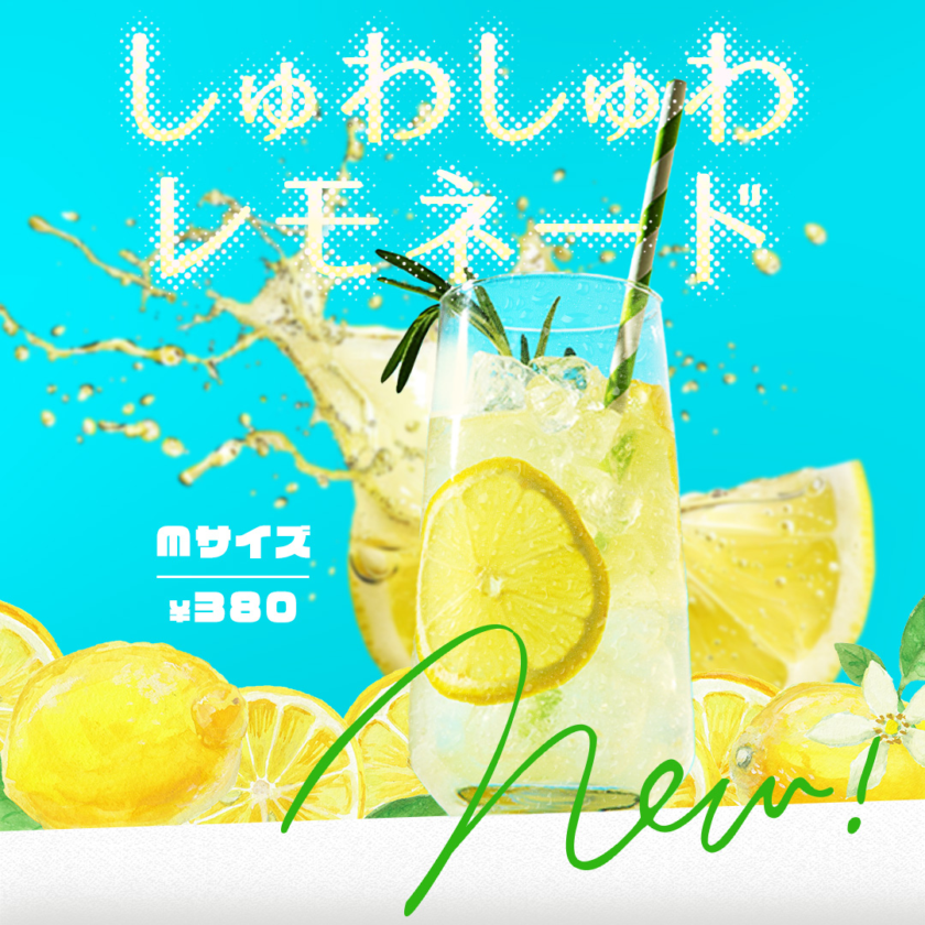 こちらのバナーはテキストにドットのテクスチャを載せることで炭酸の泡をイメージさせ、炭酸飲料のシュワシュワ感をさらに伝えられています。