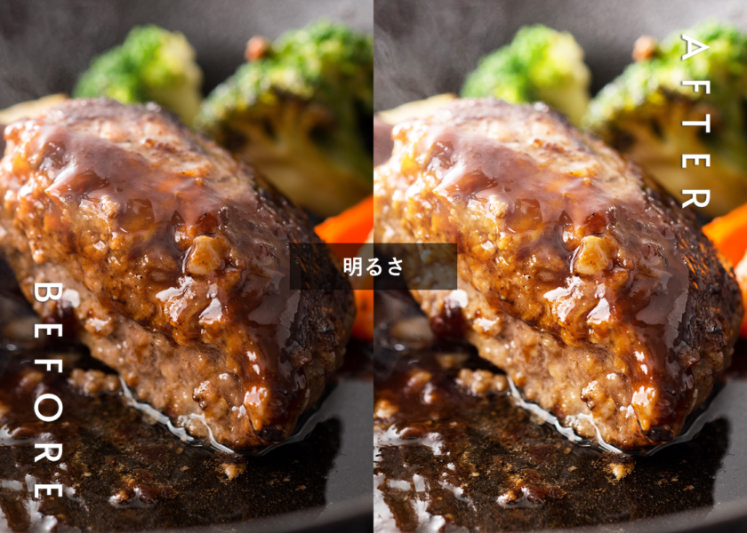 撮影した写真はそのままだと暗く見えることが多く、食品の魅力が十分に伝わらない場合があります。適切な明るさに調整することでより食品を見やすく、引き立てることができます。