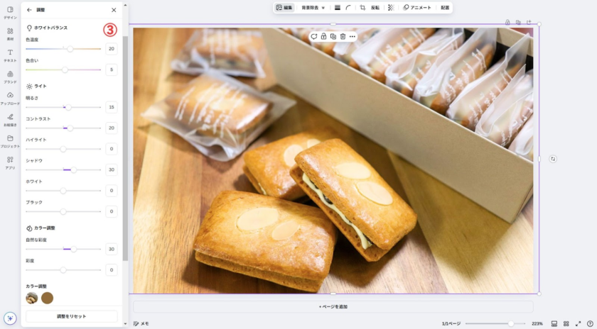 ①素材をクリックして[画像を編集]