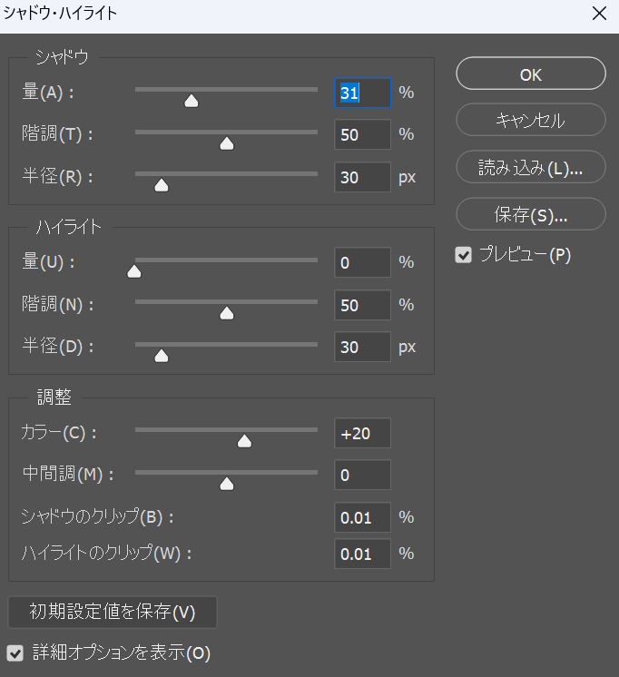次に、シャドウ・ハイライトを調整しましょう。