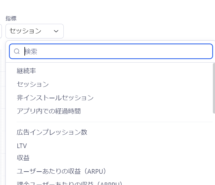 5.指標を選択します。選択できる指標はこちら