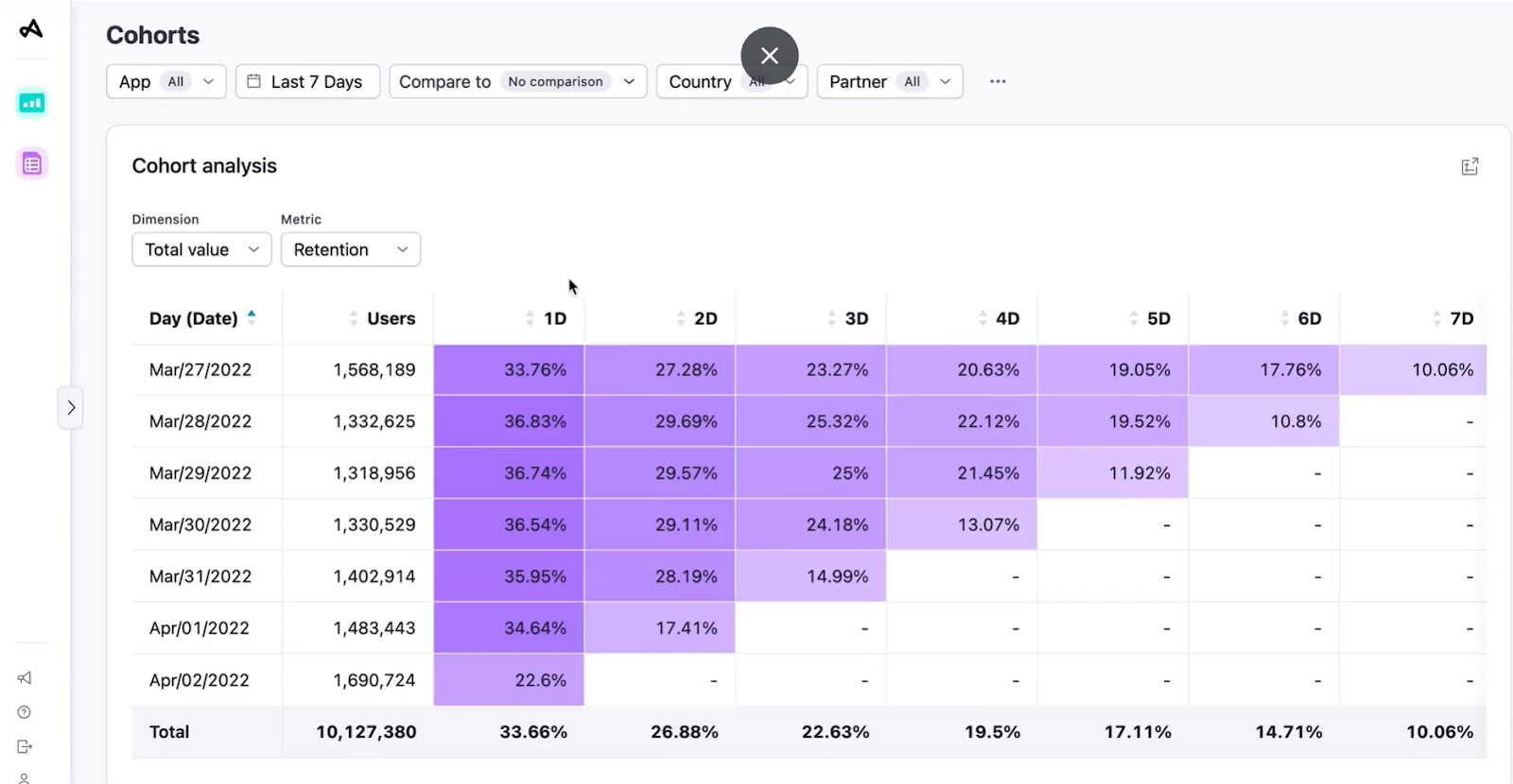 では、実際にAppsFlyerやAdjustでどのようにコホート分析結果が得られるのか、またそこからどのような仮説が考えられるかをみていきましょう。