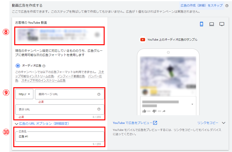 参考:YouTube オーディオ広告を作成する - Google 広告 ヘルプ