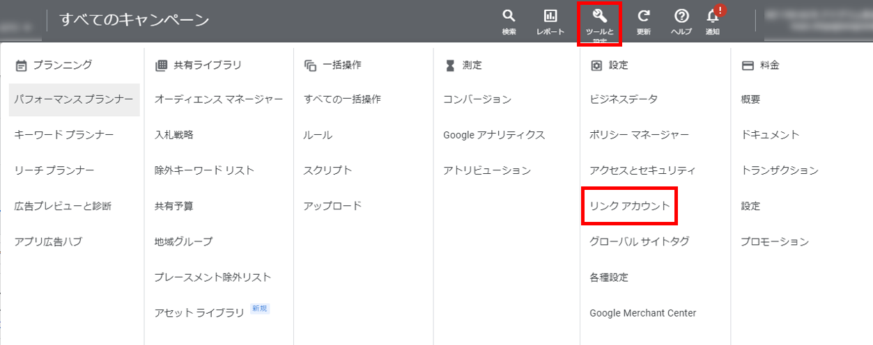 [ツールと設定]から[リンク アカウント]をクリックします。