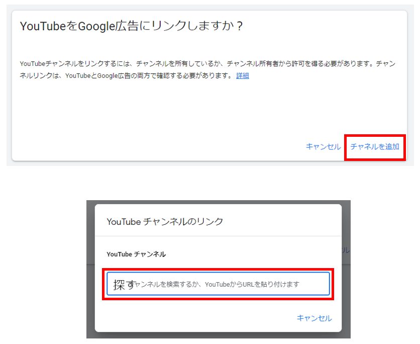 チャンネルの選択方法は、Google 広告アカウントとYouTubeチャンネルの所有者(Google アカウント)が同じ場合とそうでない場合で異なります。