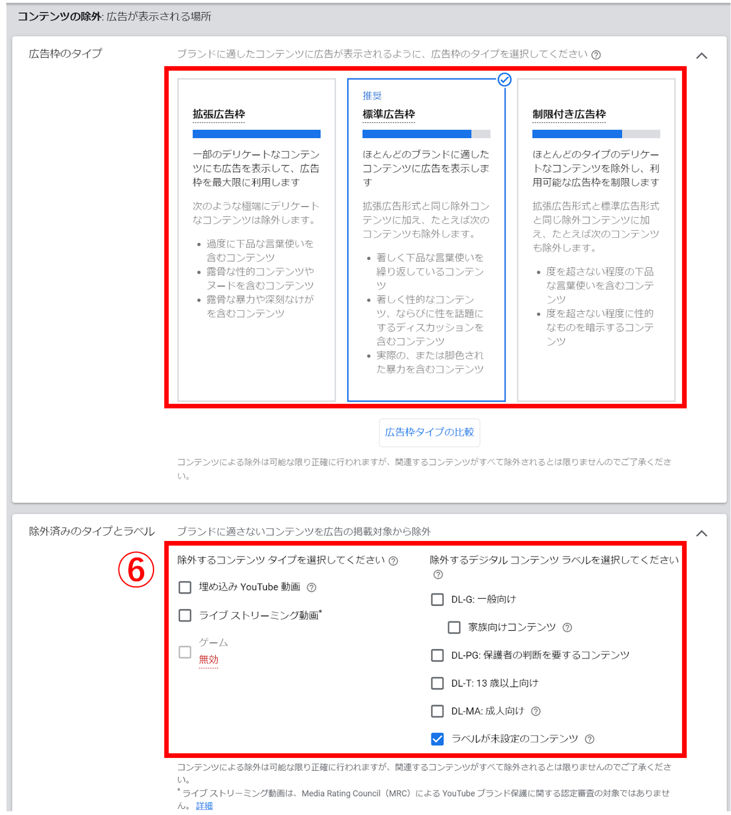 ⑨広告を表示する場所を指定します。キーワード、トピック、プレースメントからコンテンツ設定をします。