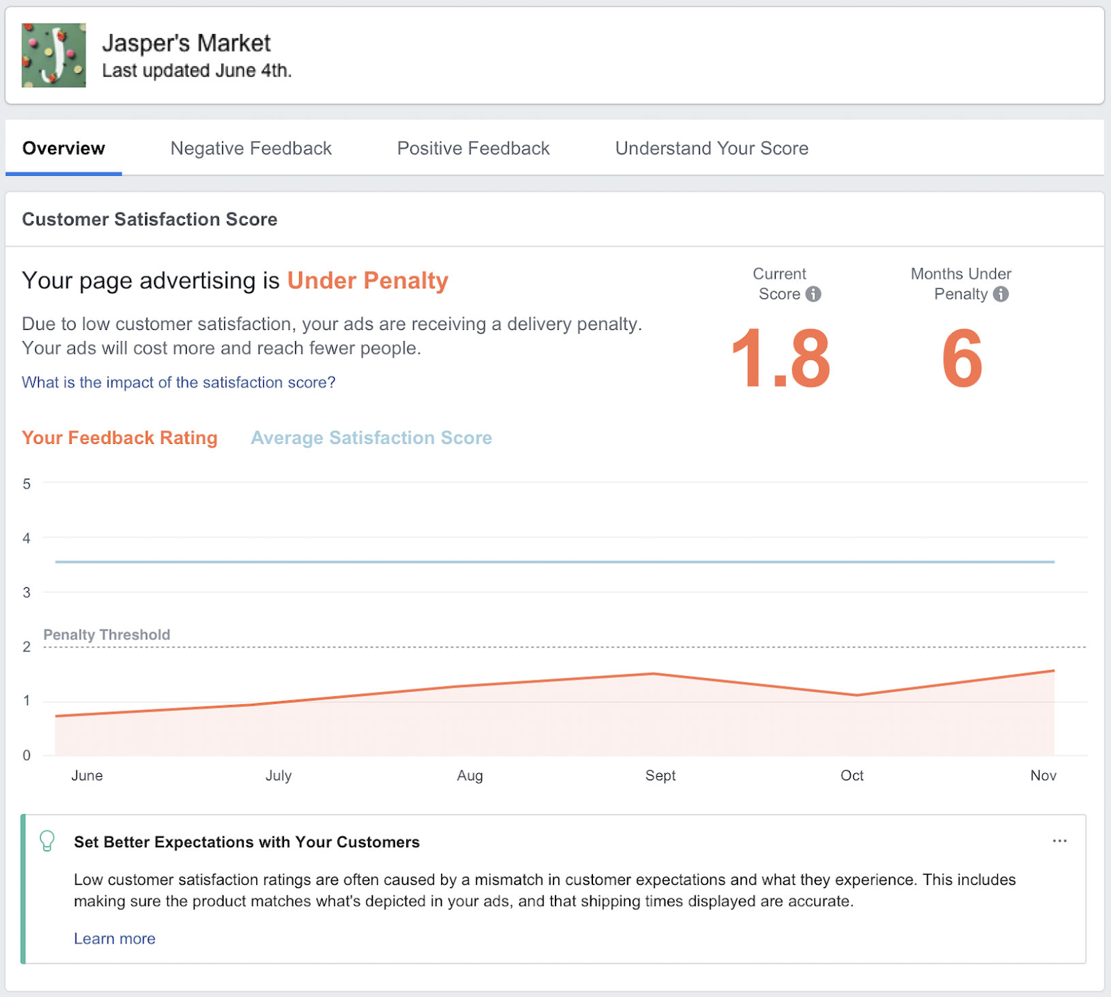 参考:How Facebook Customer Feedback Score Affects Your CPM