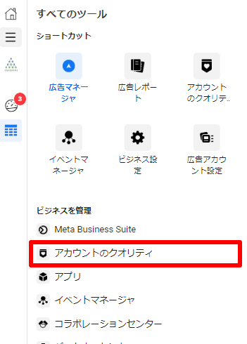 「アカウントのクオリティ」をクリックするとアクセスできます。