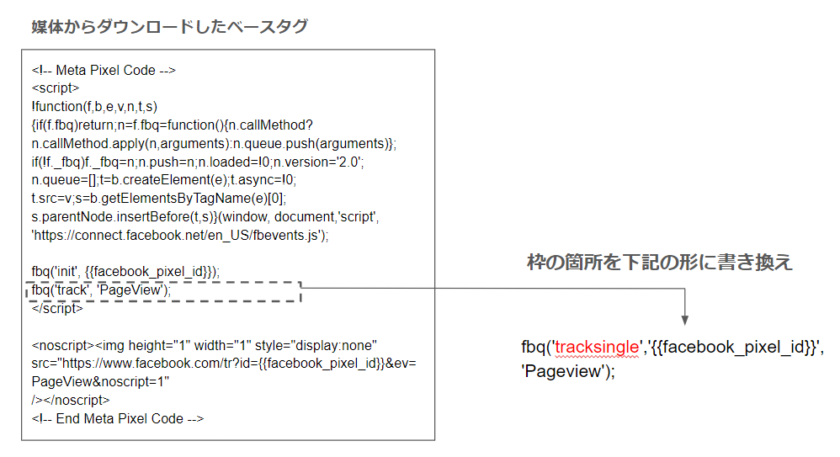 まず、Metaピクセルのベースコードを用意します。