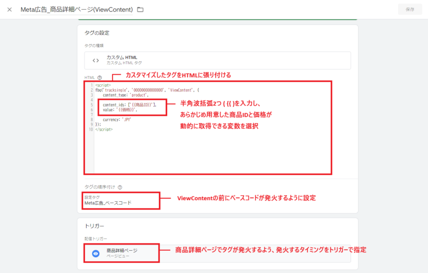 ここでは、商品詳細ページの「ページ閲覧」(View Content)を例にコードのカスタマイズを解説していきます。