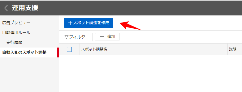 「自動入札のスポット調整」は運用支援ツールのひとつとして用意されています。それでは設定方法を確認していきましょう。