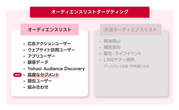 | 配信に必要なオーディエンスリストのユーザーサイズ(ユーザー数) | 1,000以上 |