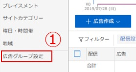 ①広告グループ設定をクリック