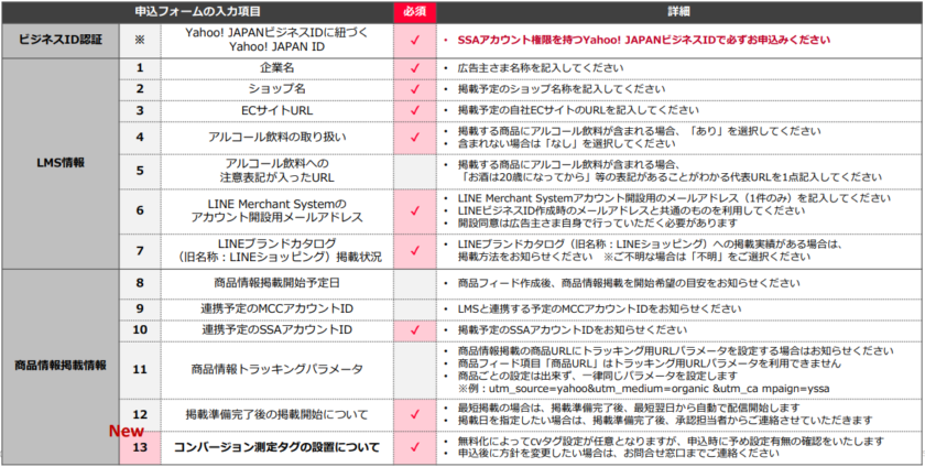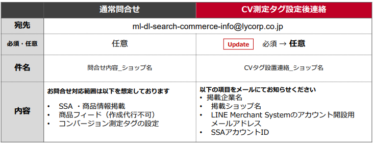 検索広告(ショッピング)アカウント、LMSアカウントの発行完了後、LINEヤフー社の営業担当から商品情報掲載の無料化に対応した申込みフォームが案内がきます。そちらをメールにて返信します。